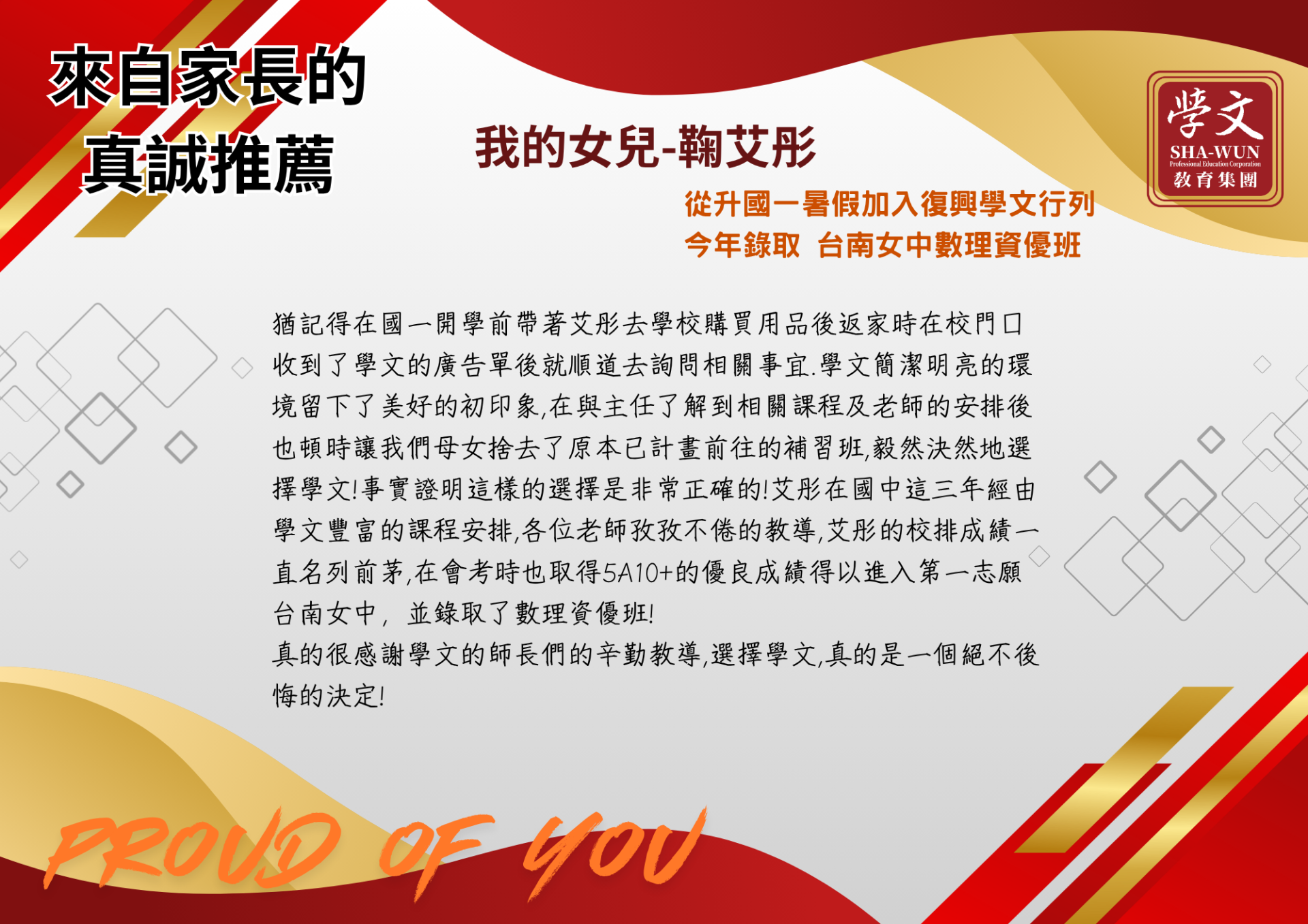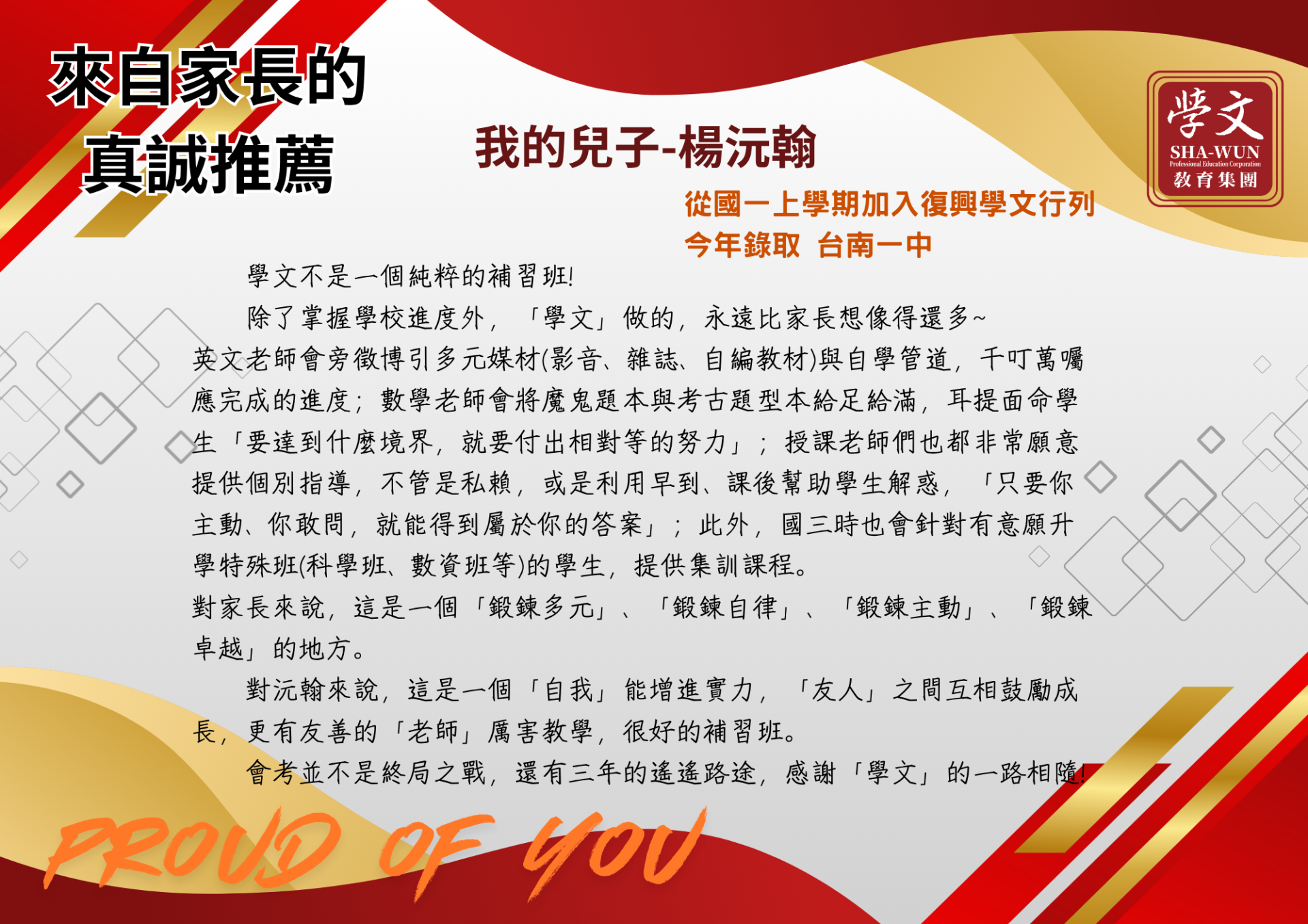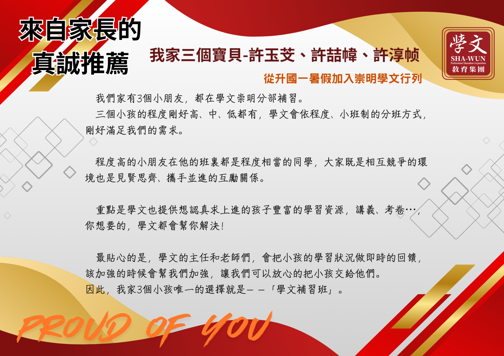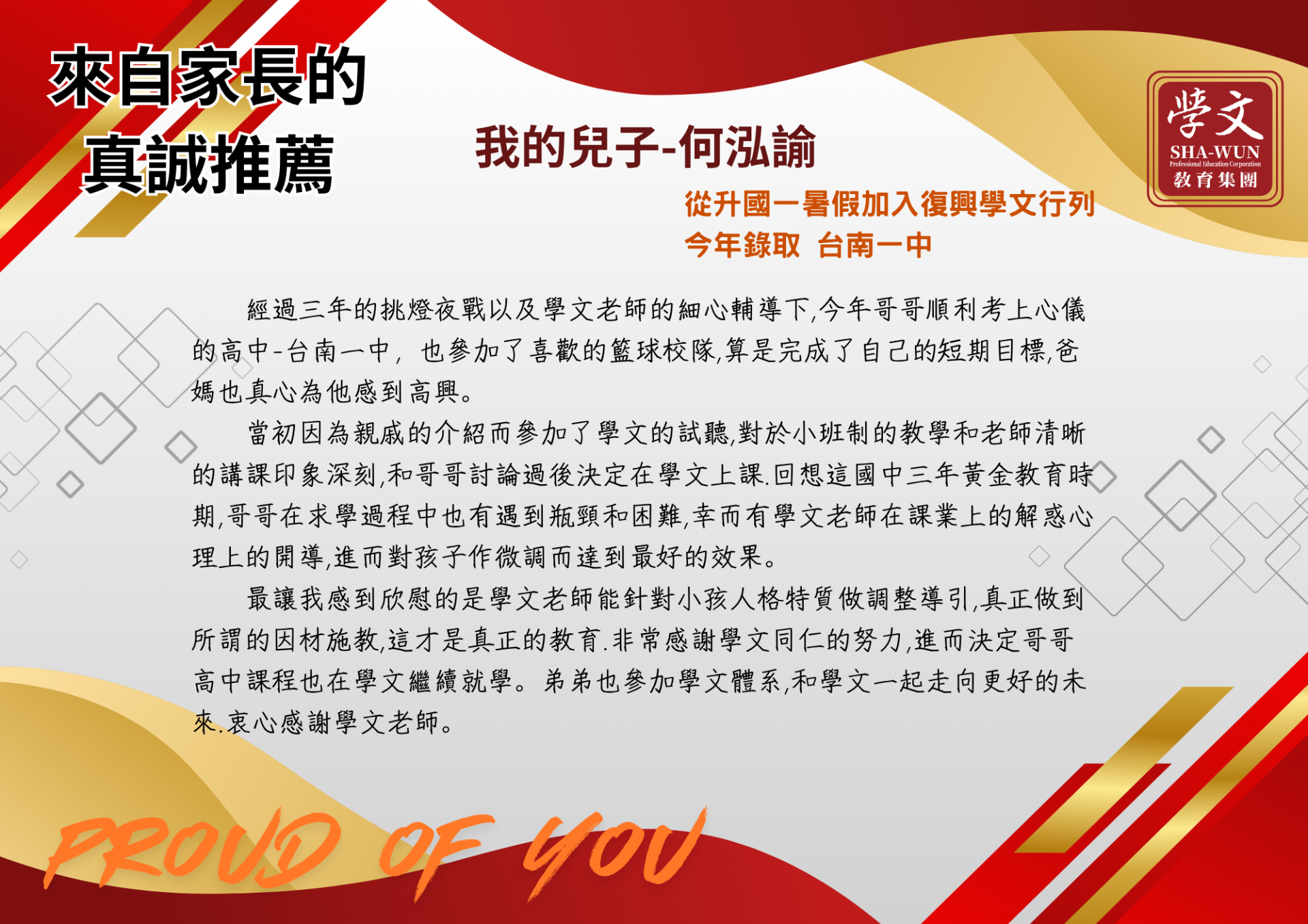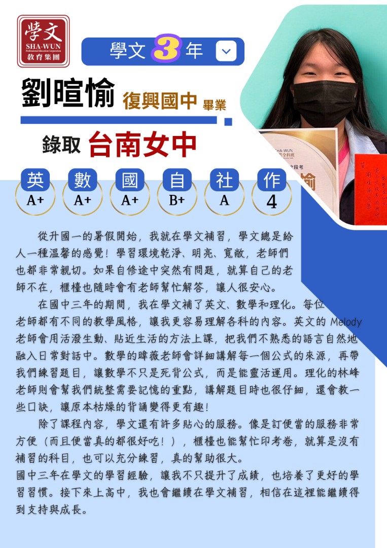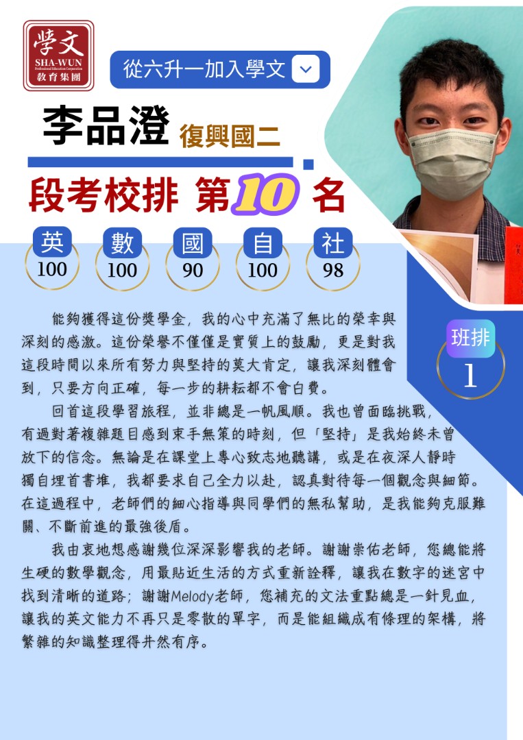 復興區|獎學金獲獎同學
