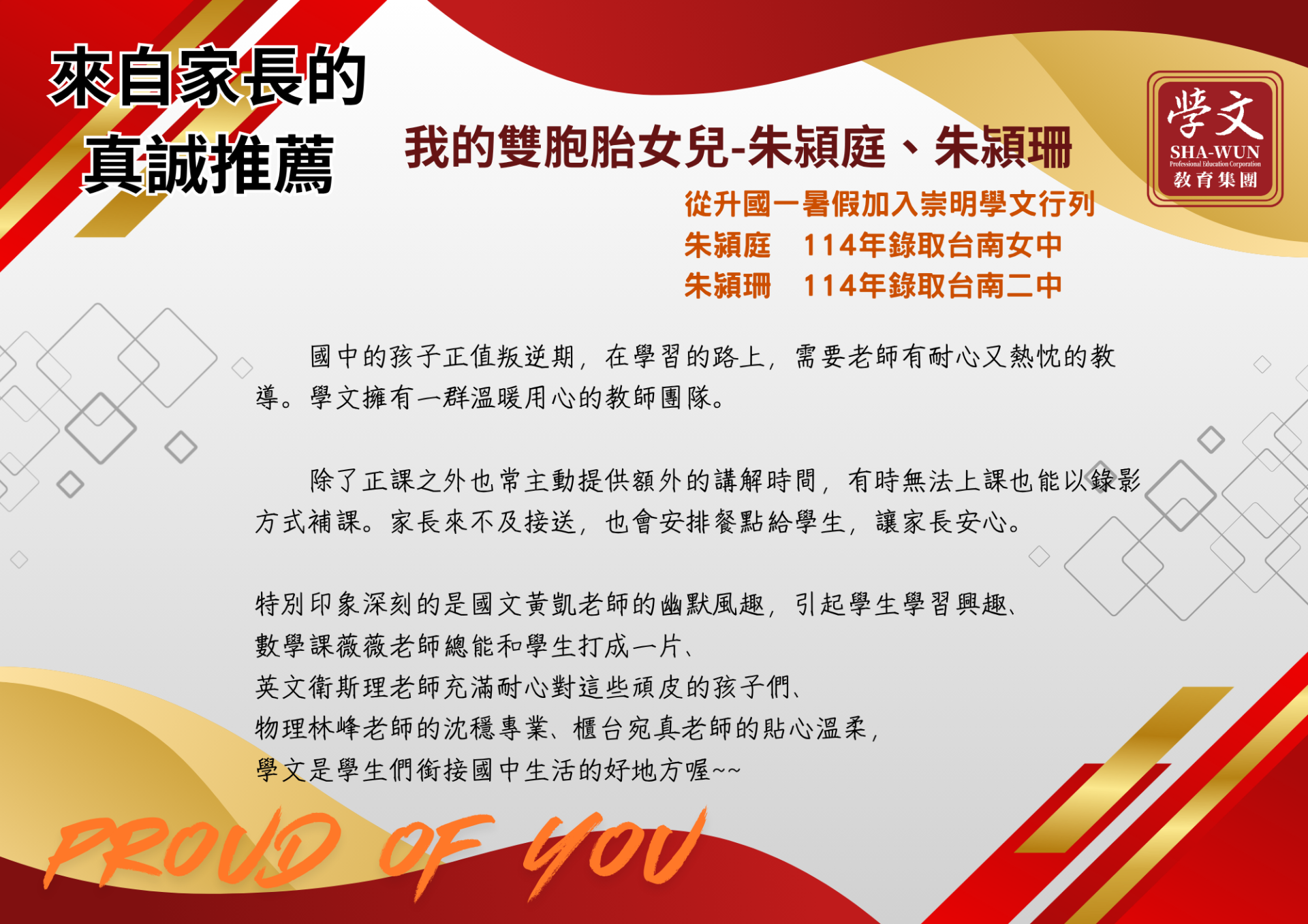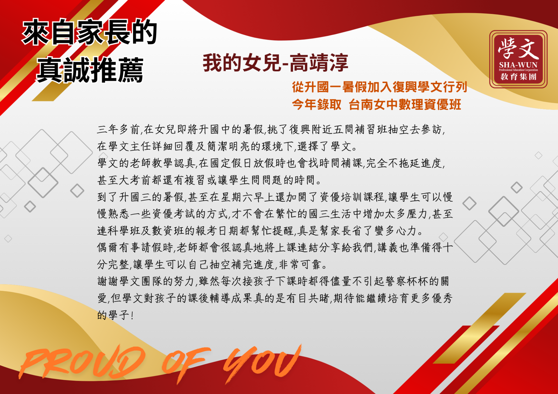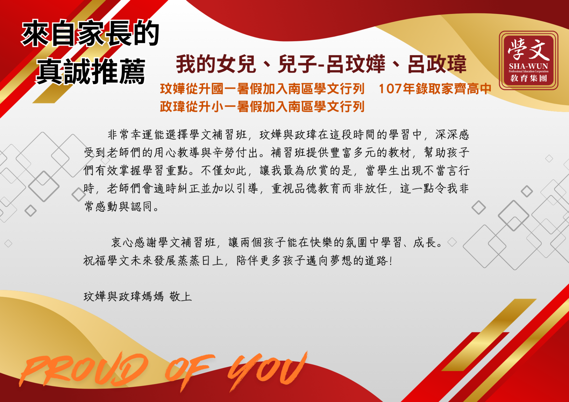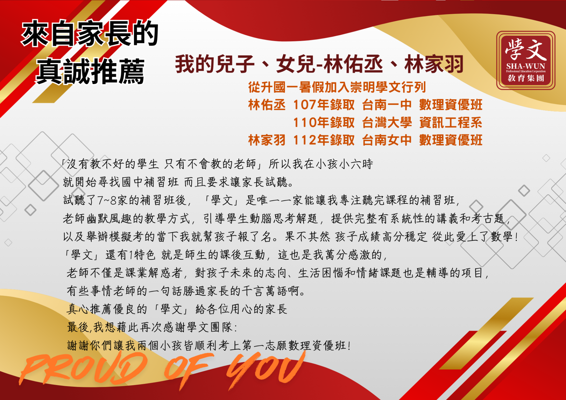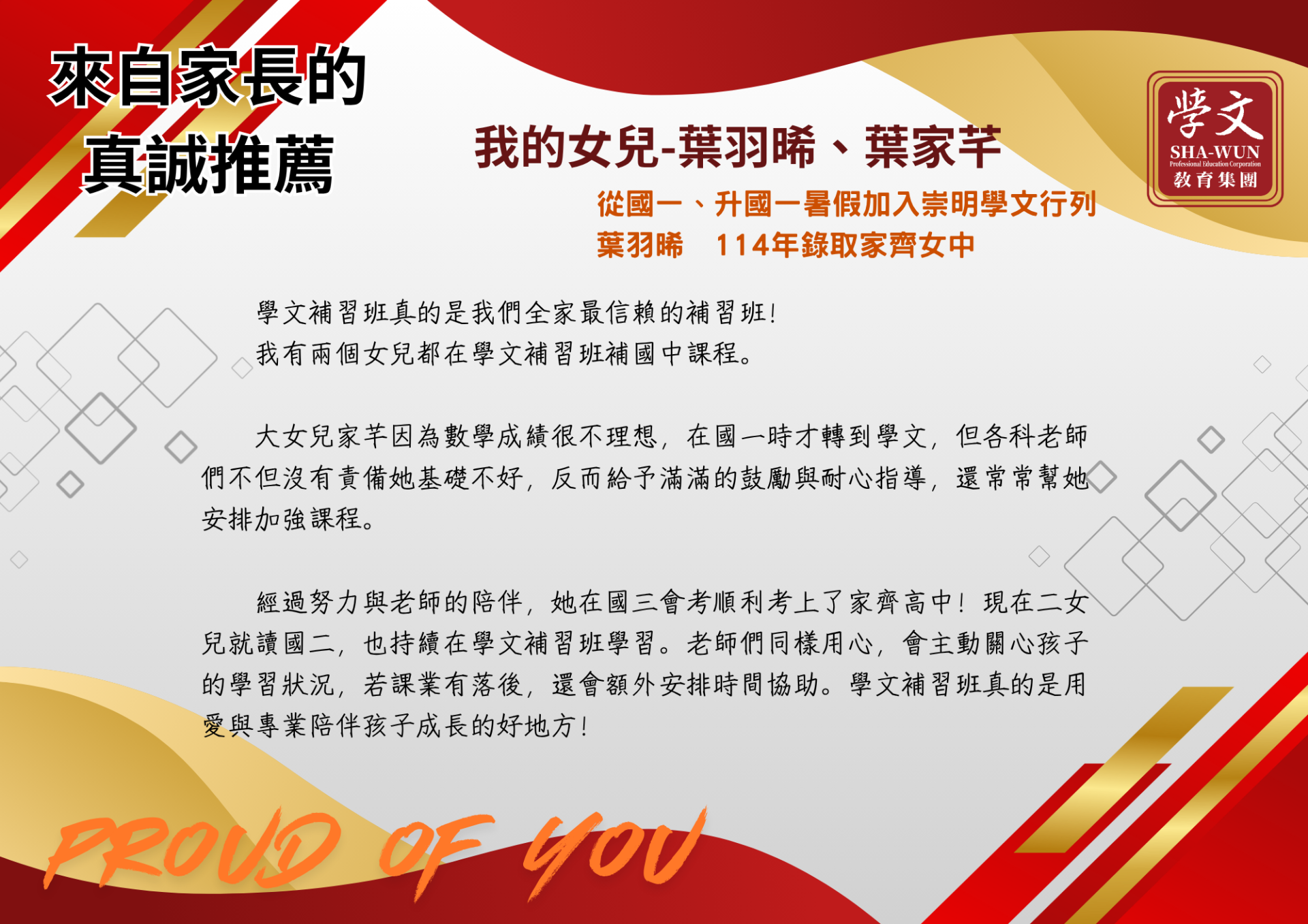復興區|獎學金獲獎同學